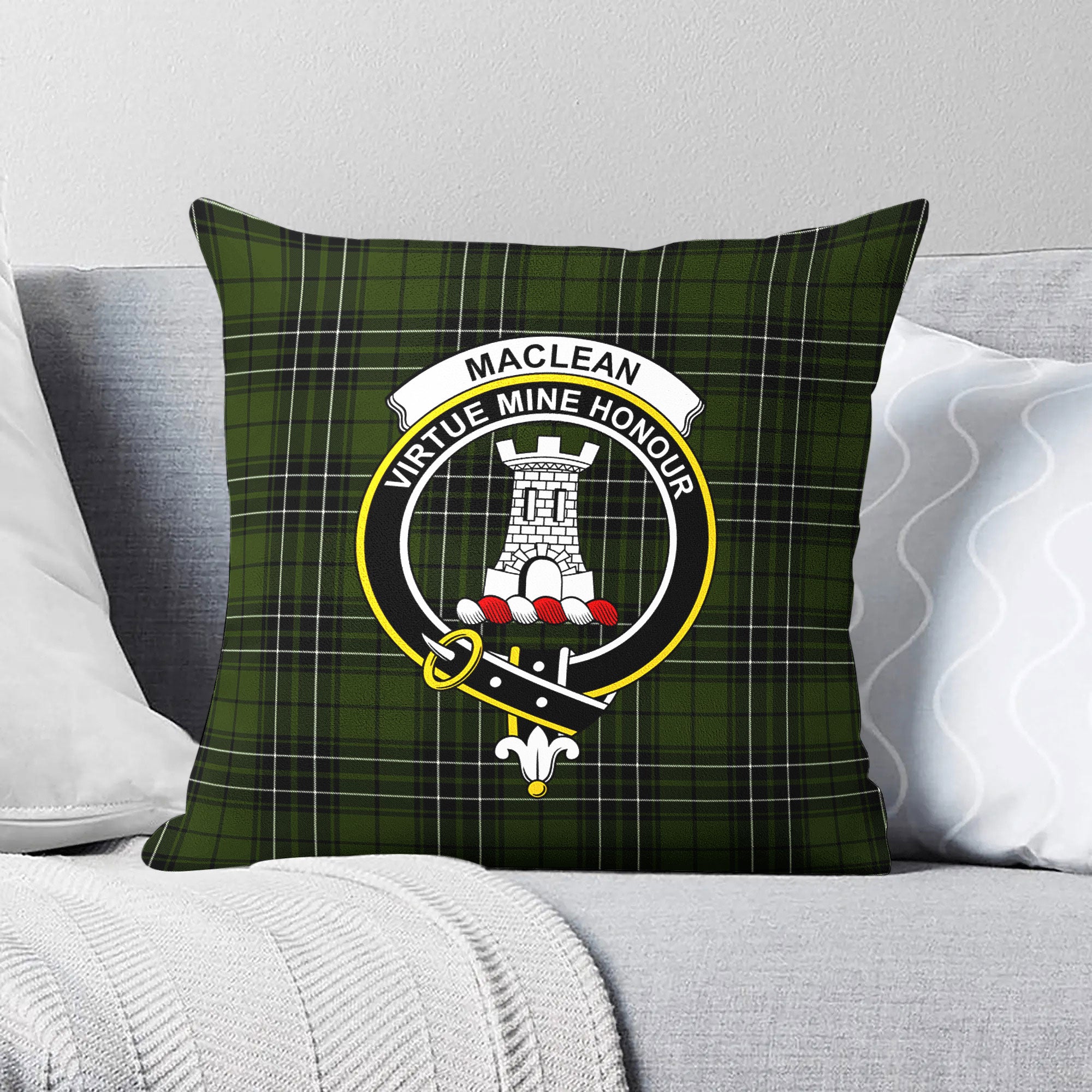 MacLean Hunting Tartan Crest Pillow Cover