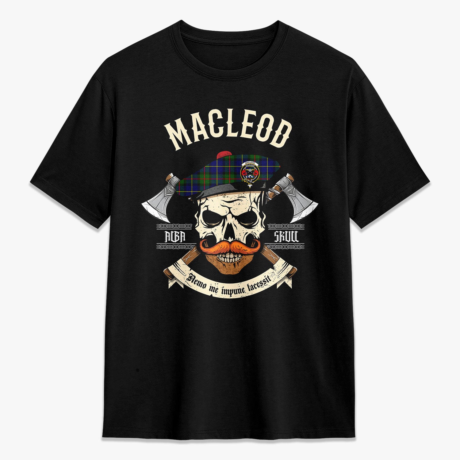 MacLeod of Harris Modern Tartan Crest 2D T-shirt - Alba Skull Style,