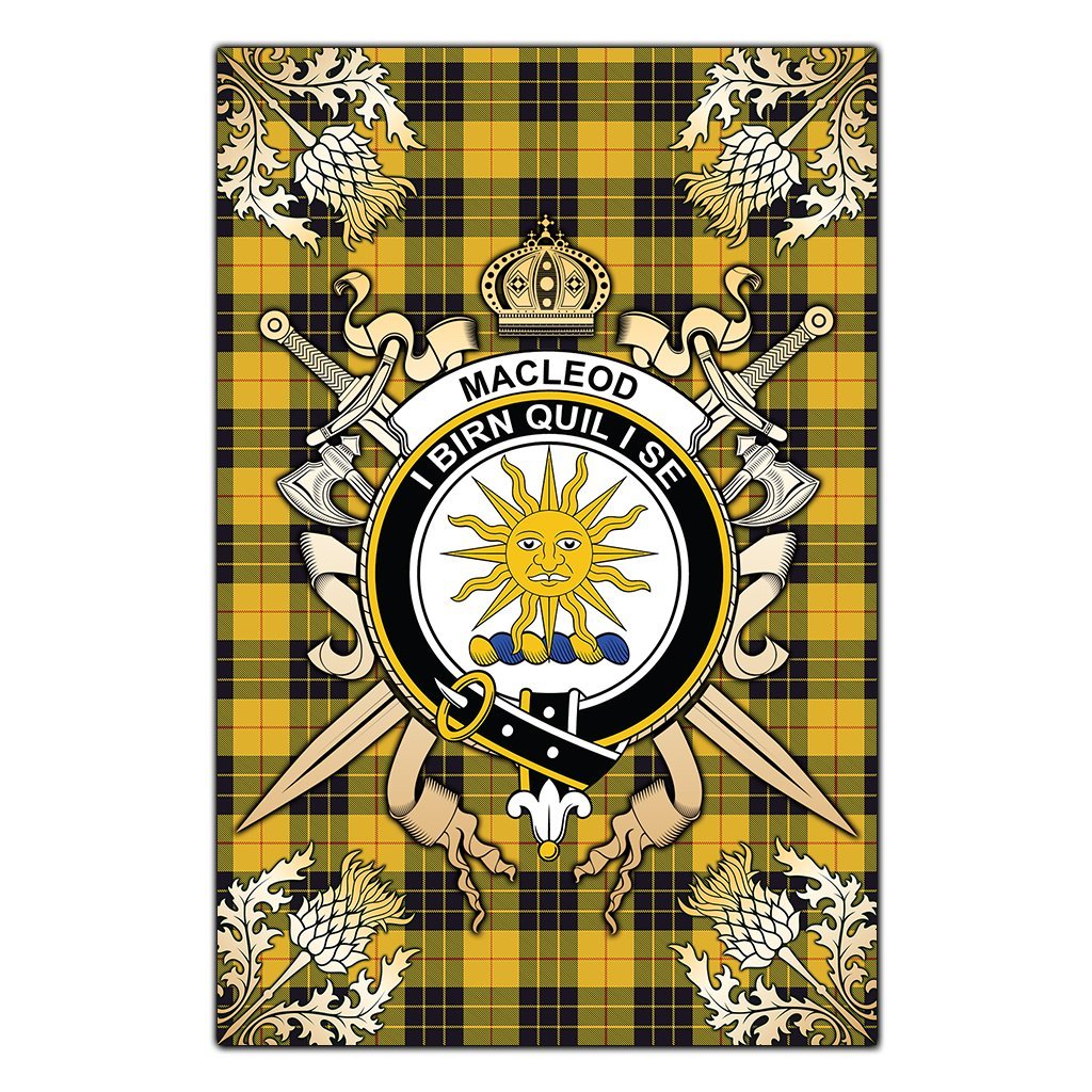 MacLeod of Lewis Ancient Tartan Crest Black Garden Flag - Gold Thistle Style
