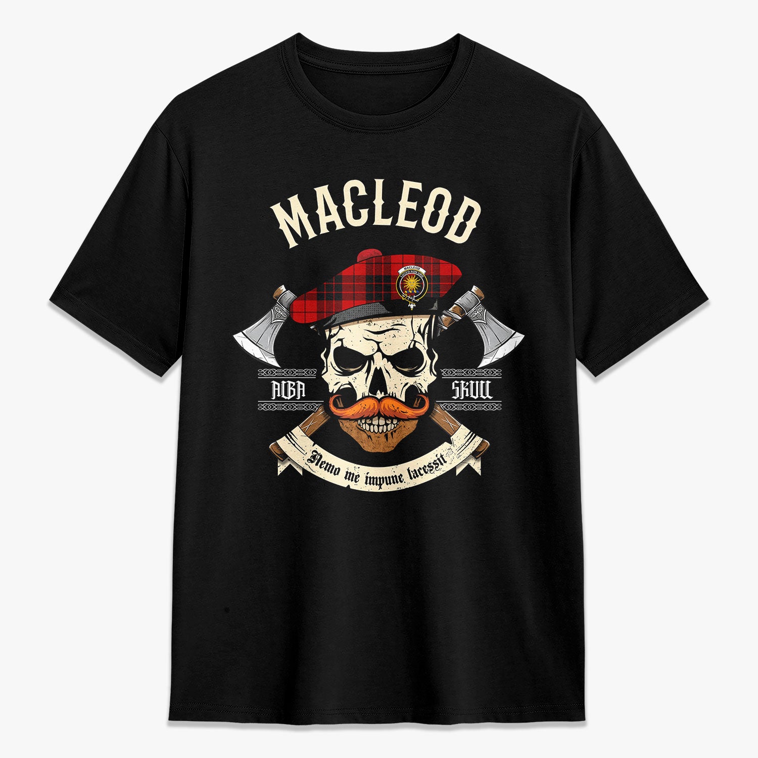 MacLeod of Raasay Tartan Crest 2D T-shirt - Alba Skull Style,
