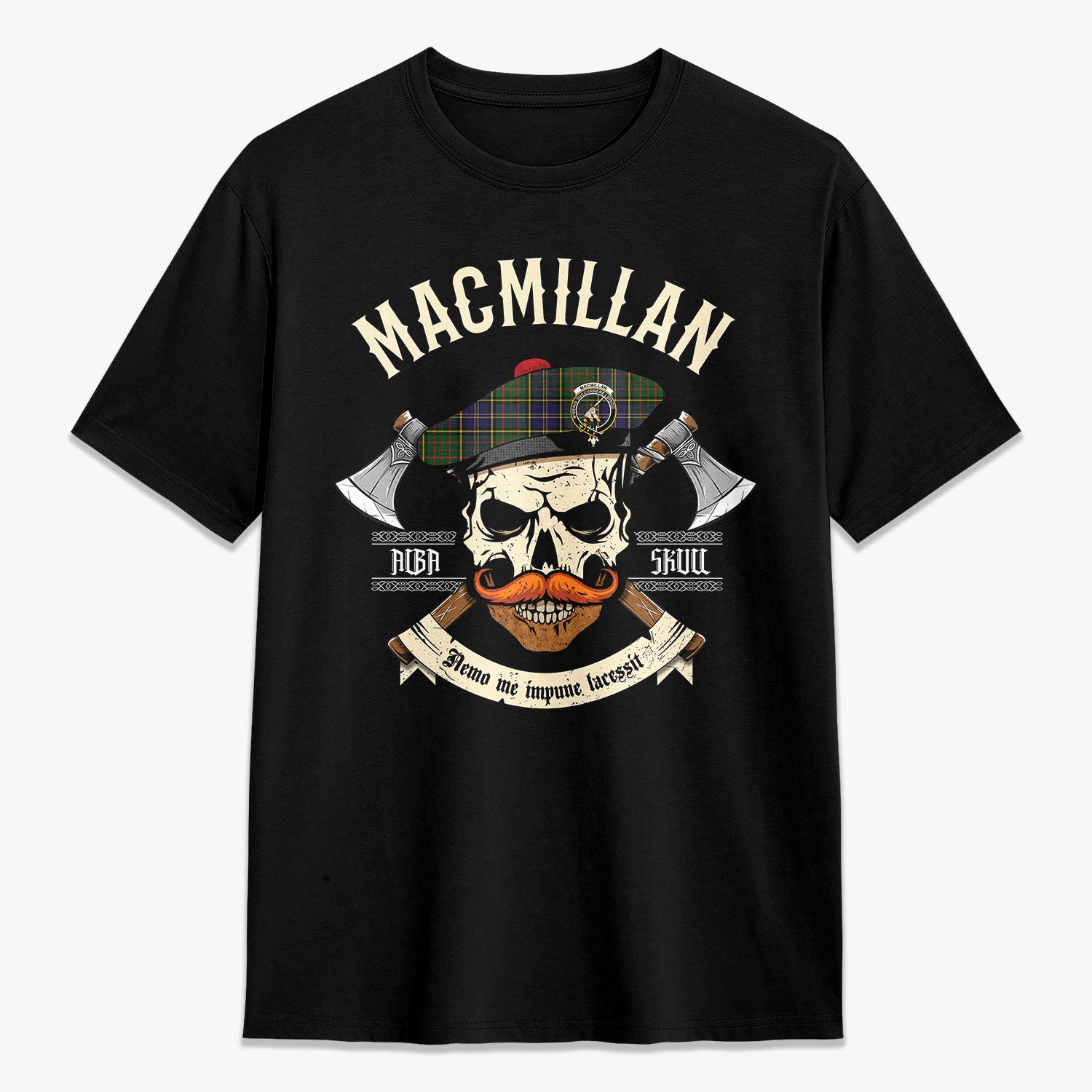 MacMillan Hunting Modern Tartan Crest 2D T-shirt - Alba Skull Style,