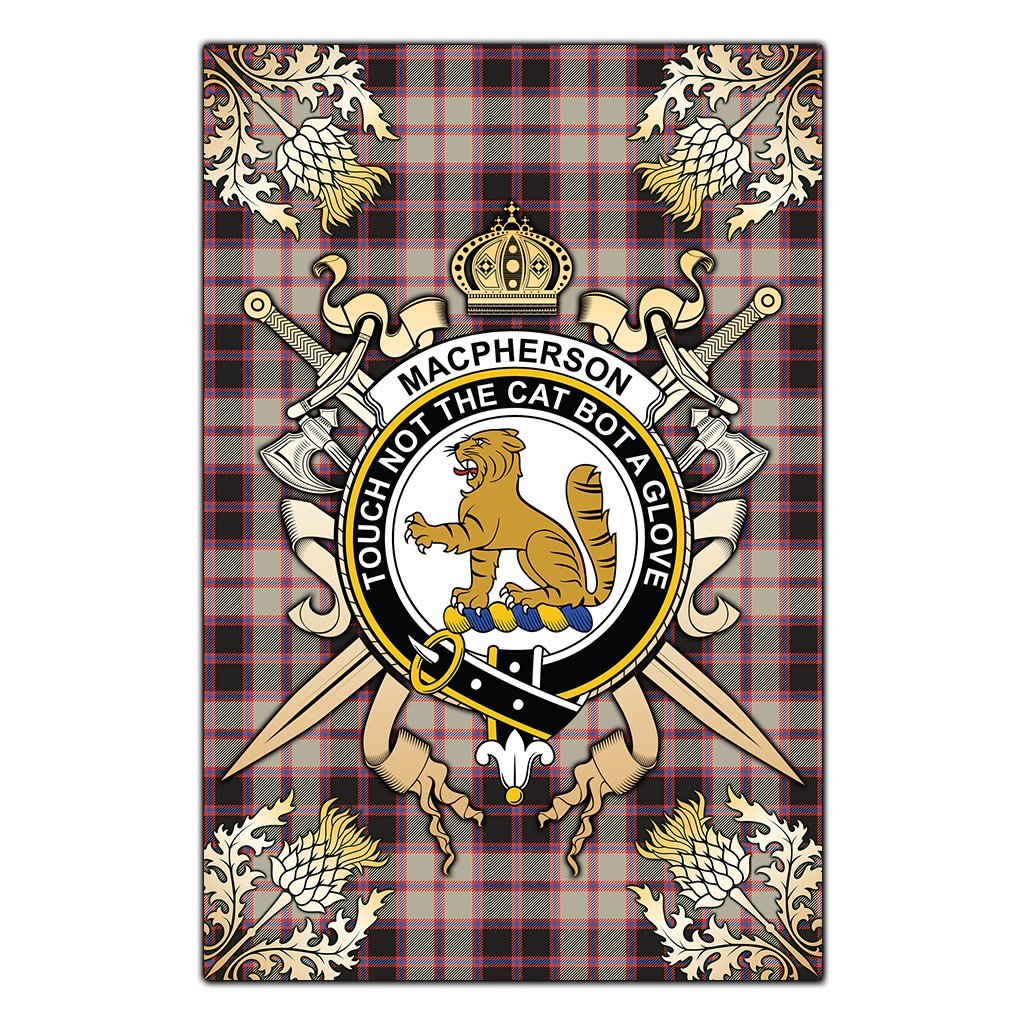 MacPherson Hunting Ancient Tartan Crest Black Garden Flag - Gold Thistle Style