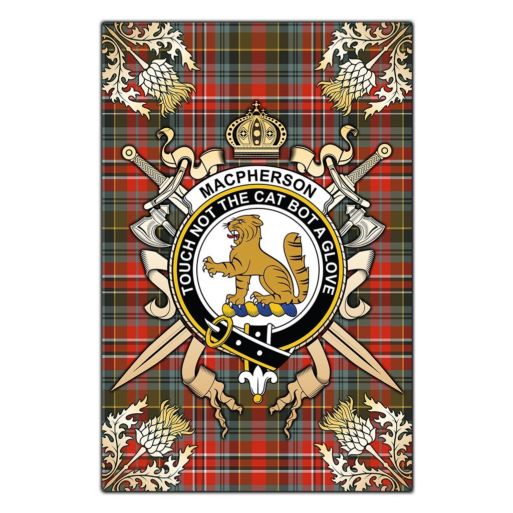 MacPherson Weathered Tartan Crest Black Garden Flag - Gold Thistle Style