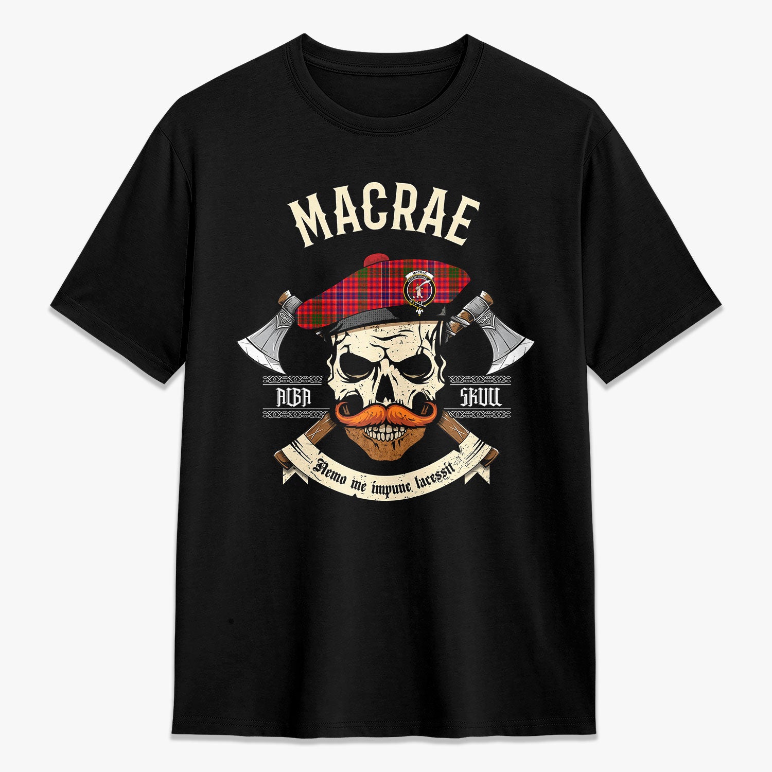 MacRae Modern Tartan Crest 2D T-shirt - Alba Skull Style