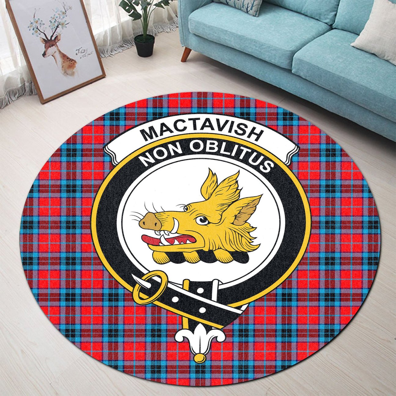 MacTavish Modern Tartan Crest Round Rug