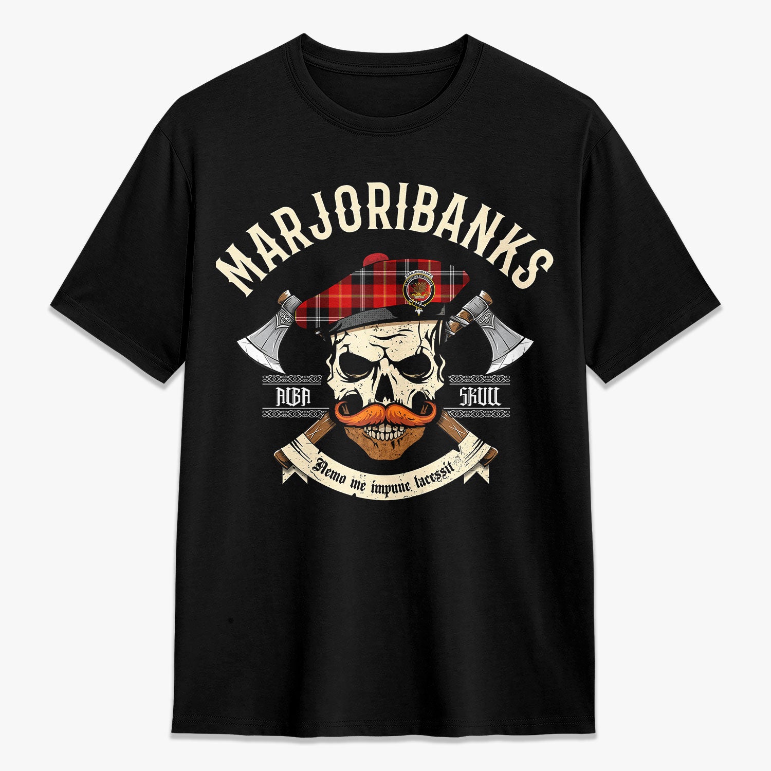 Marjoribanks Tartan Crest 2D T-shirt - Alba Skull Style,