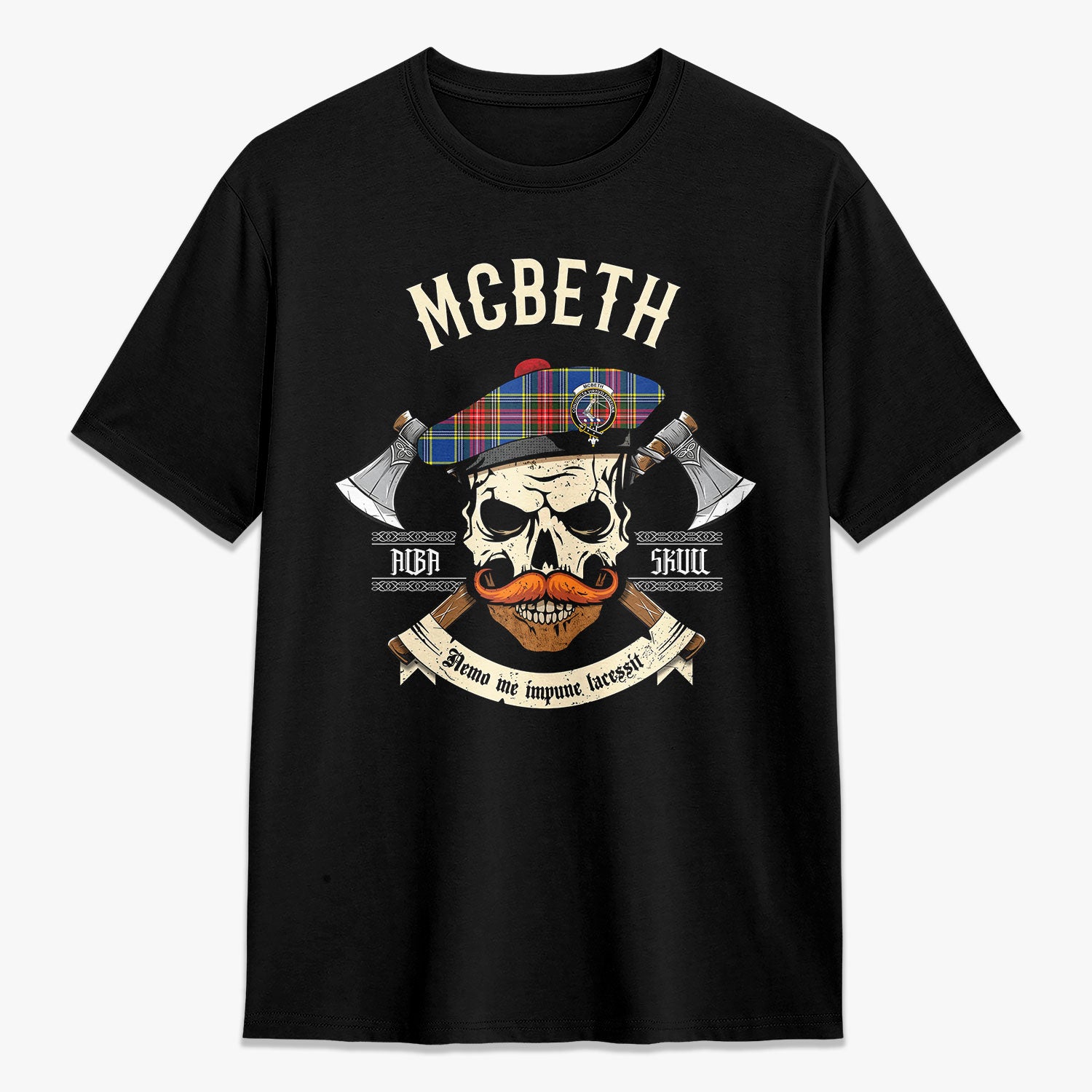 McBeth Modern Tartan Crest 2D T-shirt - Alba Skull Style,