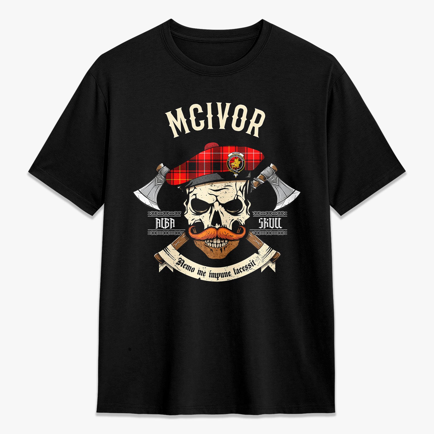 McIvor Tartan Crest 2D T-shirt - Alba Skull Style,