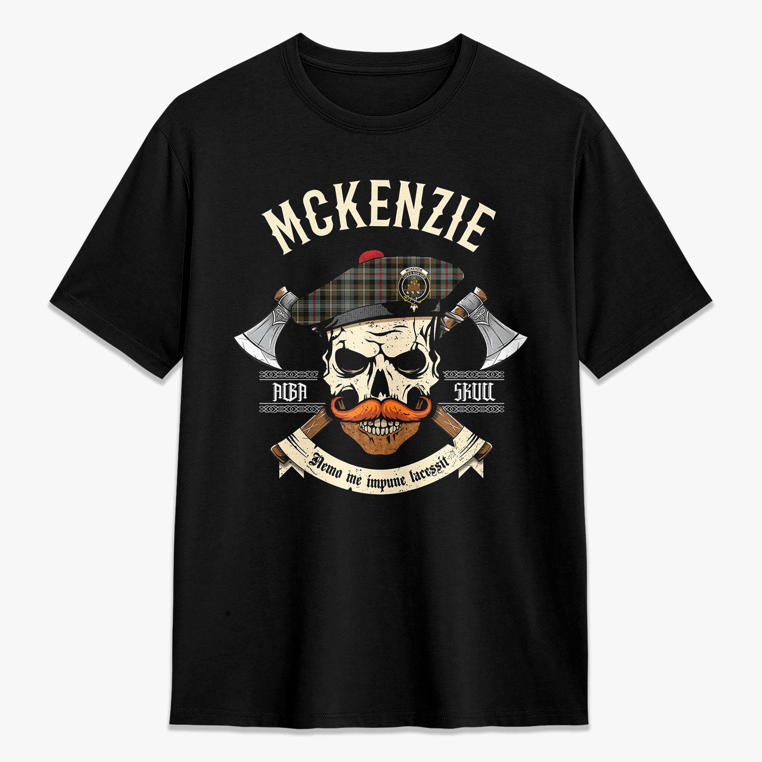 McKenzie Weathered Tartan Crest 2D T-shirt - Alba Skull Style,