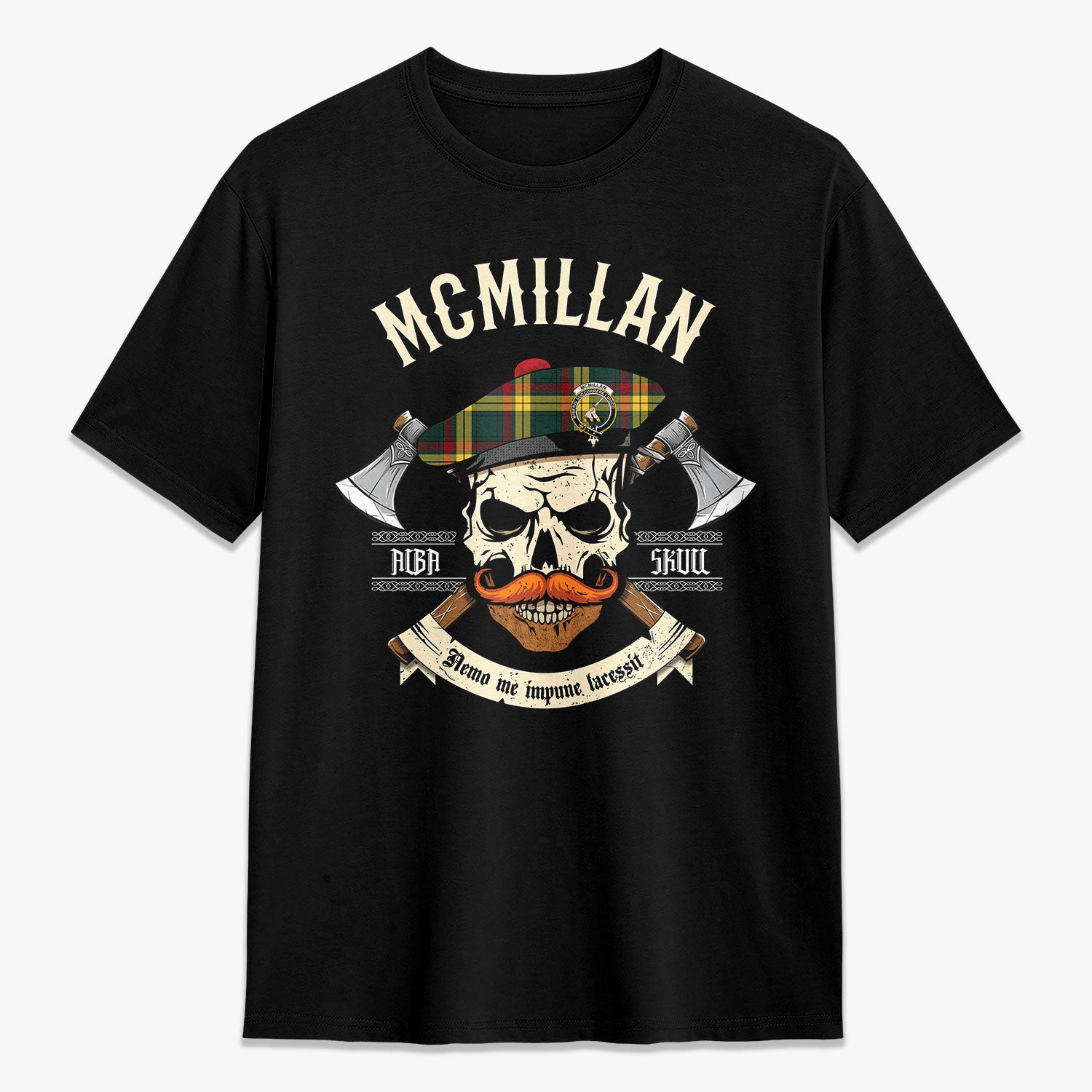 McMillan Old Modern Tartan Crest 2D T-shirt - Alba Skull Style,