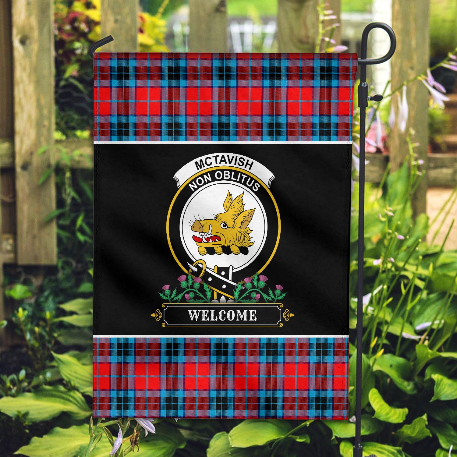 McTavish Tartan Crest Garden Flag - Welcome Style