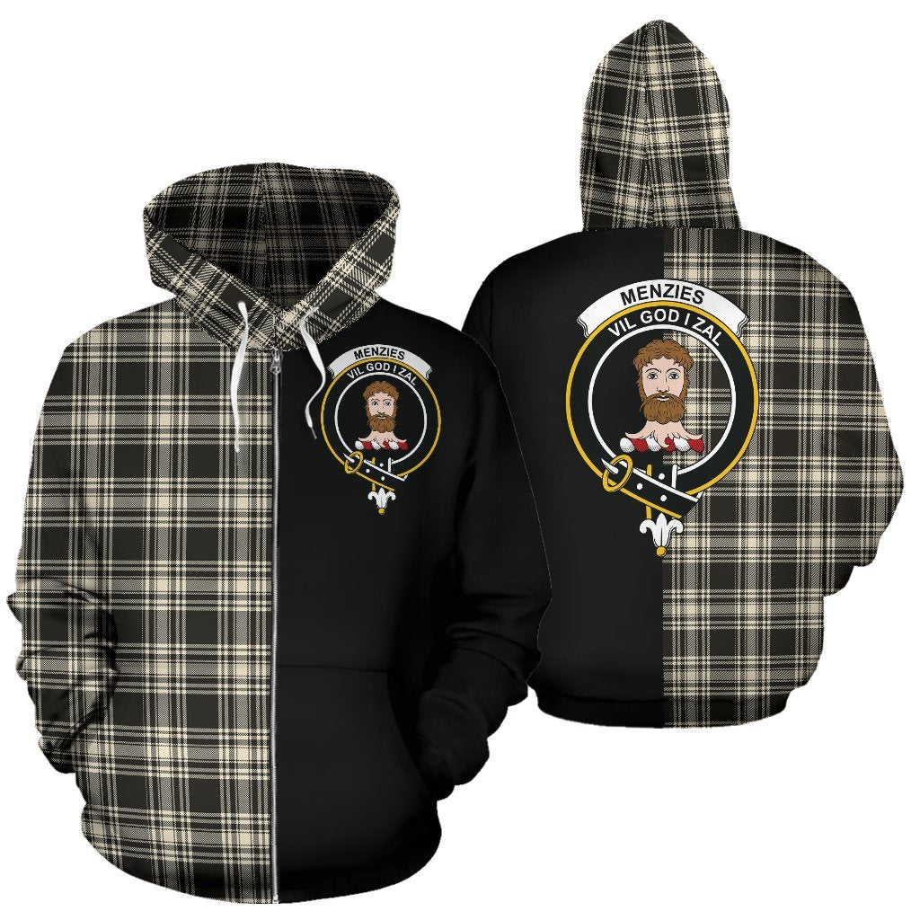 Menzies Black & White Ancient Tartan Crest Zipper Hoodie - Half Of Me Style