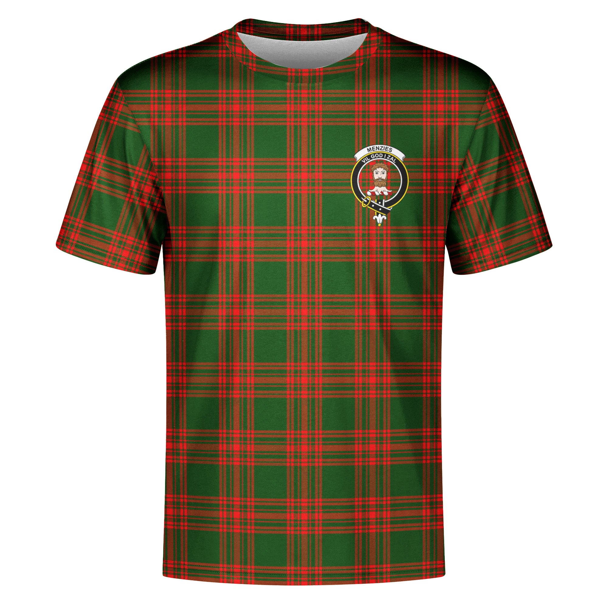 Menzies Green Modern Tartan Crest T-Shirt