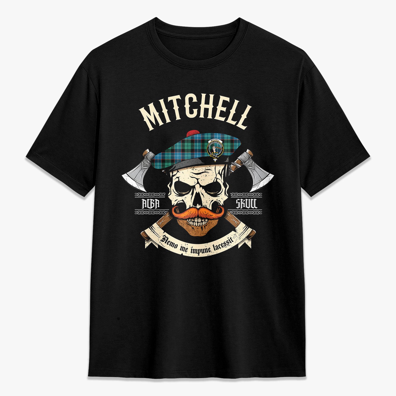 Mitchell Ancient Tartan Crest 2D T-shirt - Alba Skull Style,
