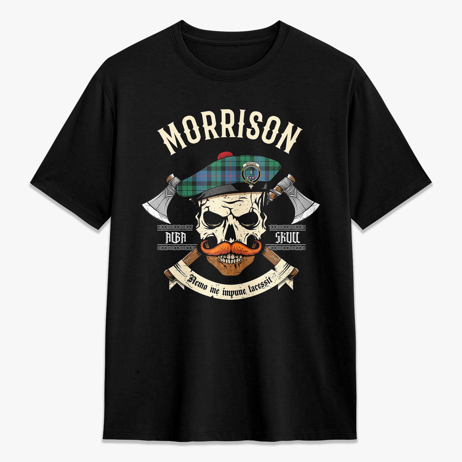 Morrison Ancient Tartan Crest 2D T-shirt - Alba Skull Style,