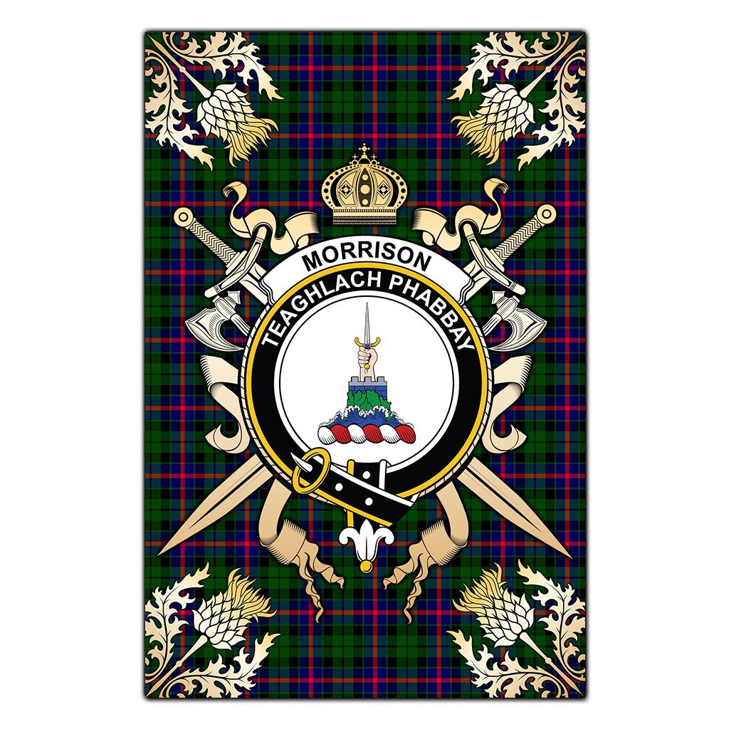 Morrison Modern Tartan Crest Black Garden Flag - Gold Thistle Style