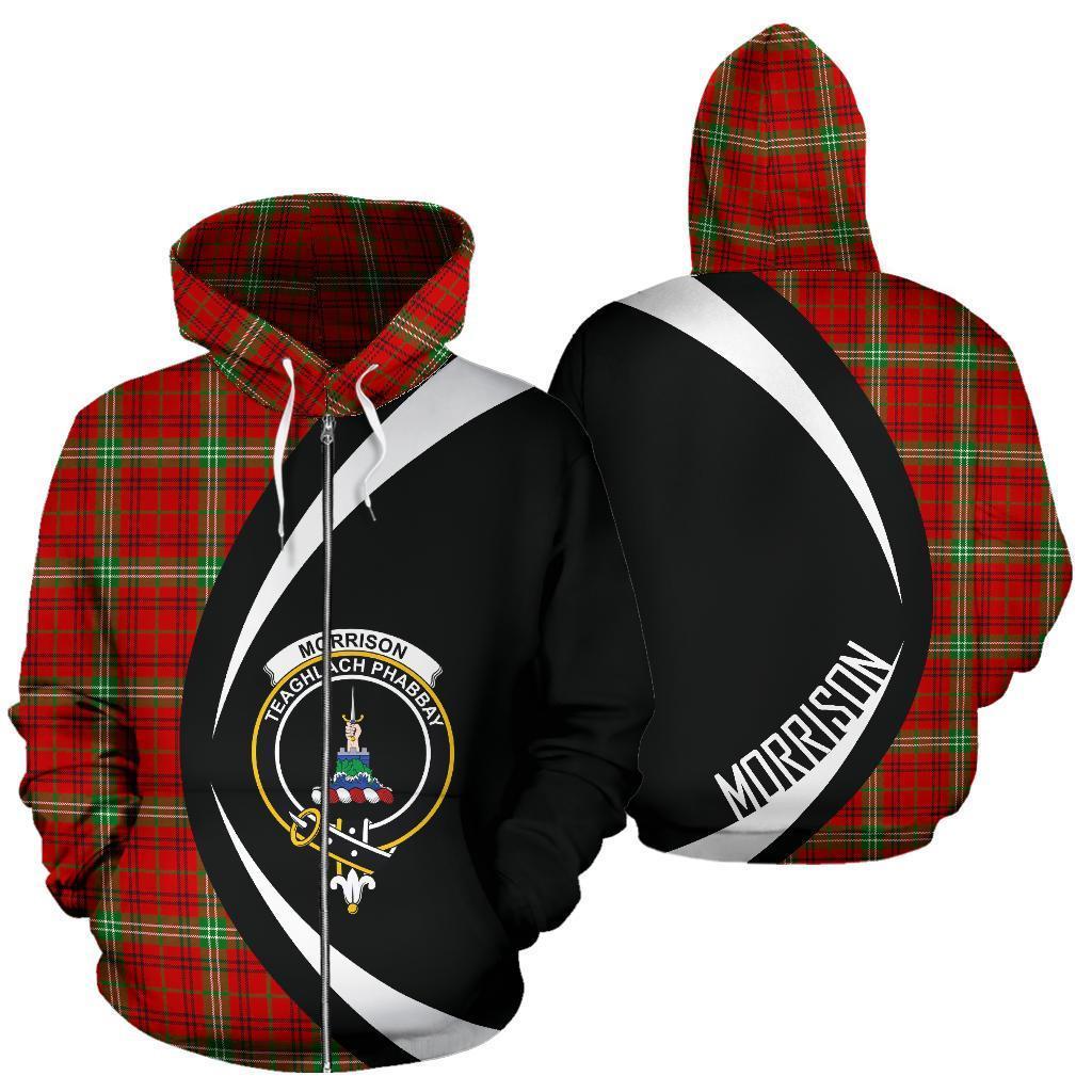 Morrison Red Modern Tartan Crest Zipper Hoodie - Circle Style