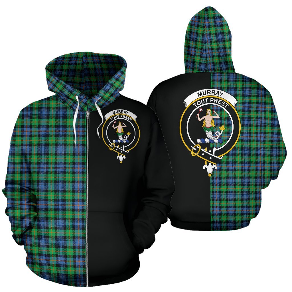 Murray of Atholl Ancient Tartan Crest Zipper Hoodie - Half Of Me Style