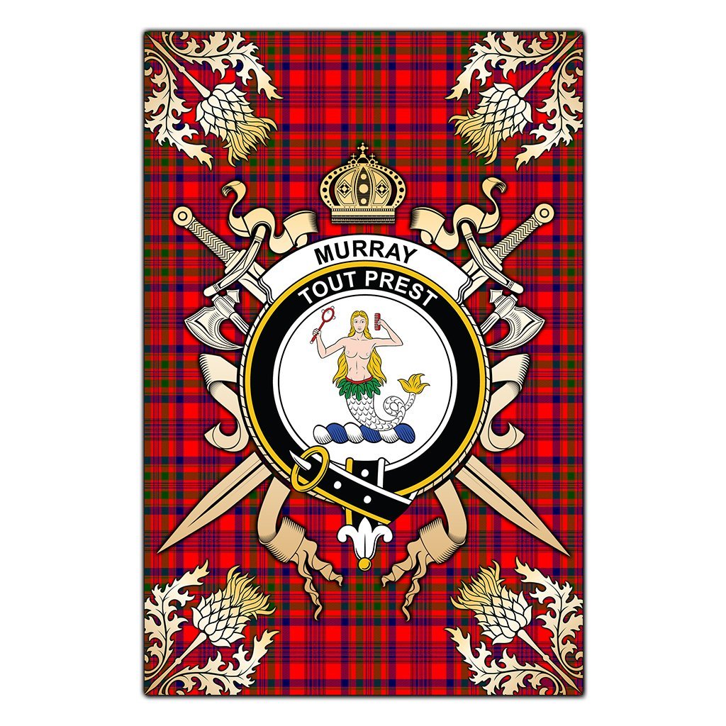 Murray of Tulloch Modern Tartan Crest Black Garden Flag - Gold Thistle Style