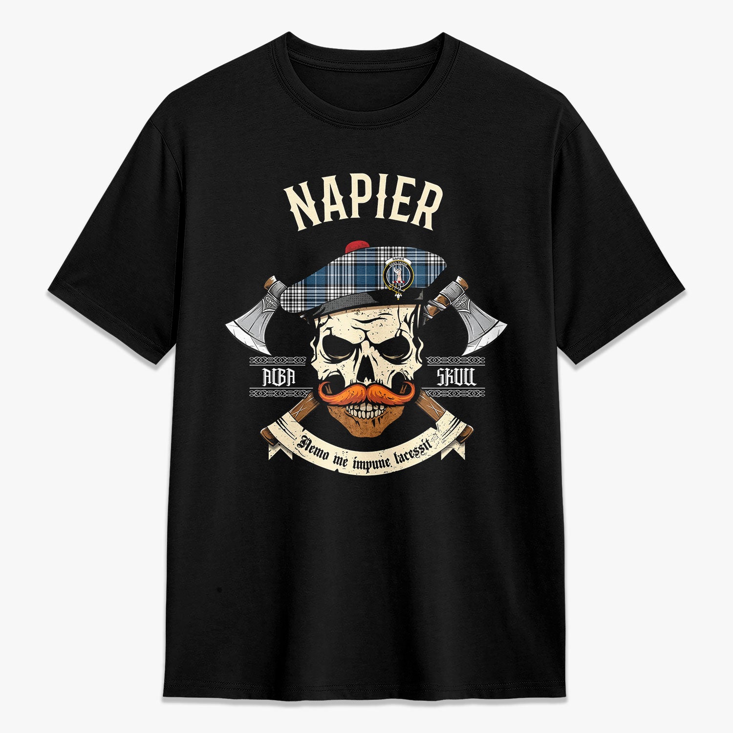 Napier Modern Tartan Crest 2D T-shirt - Alba Skull Style,