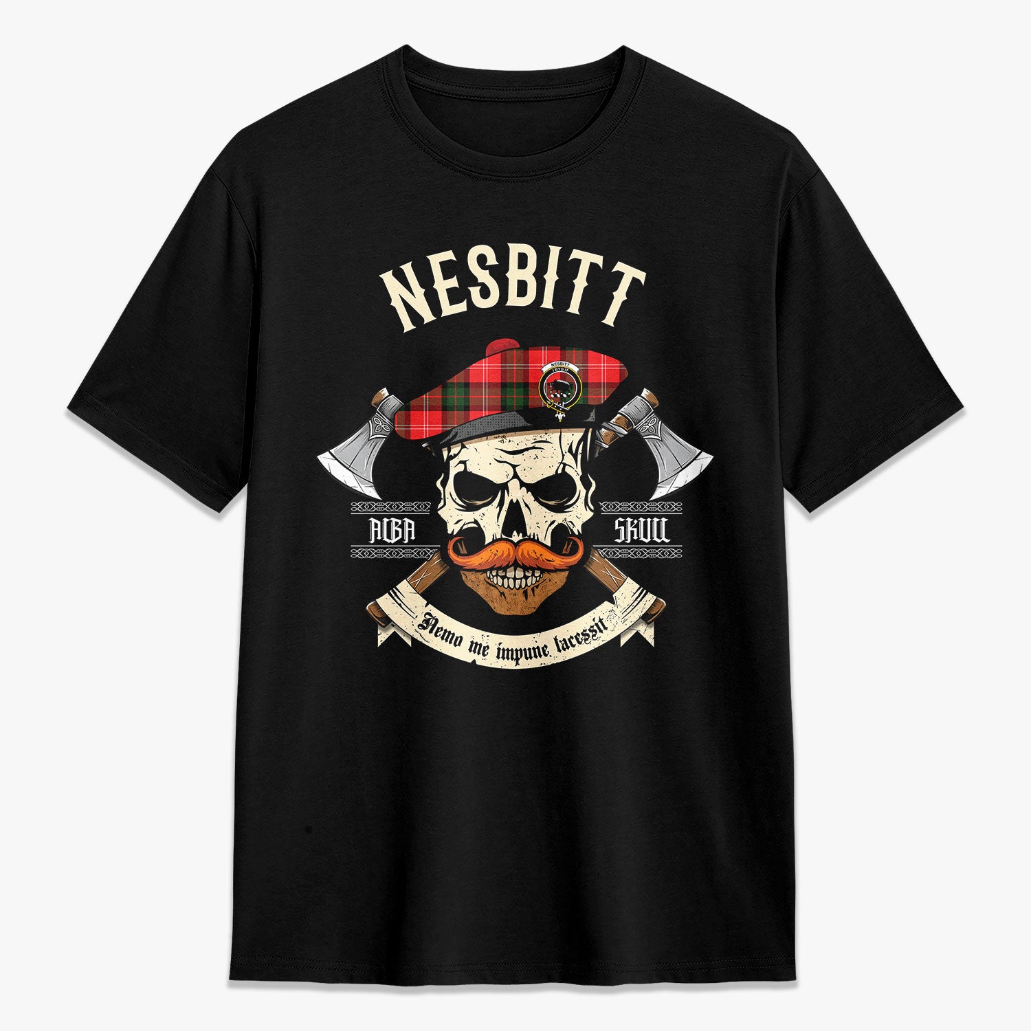 Nesbitt Modern Tartan Crest 2D T-shirt - Alba Skull Style,