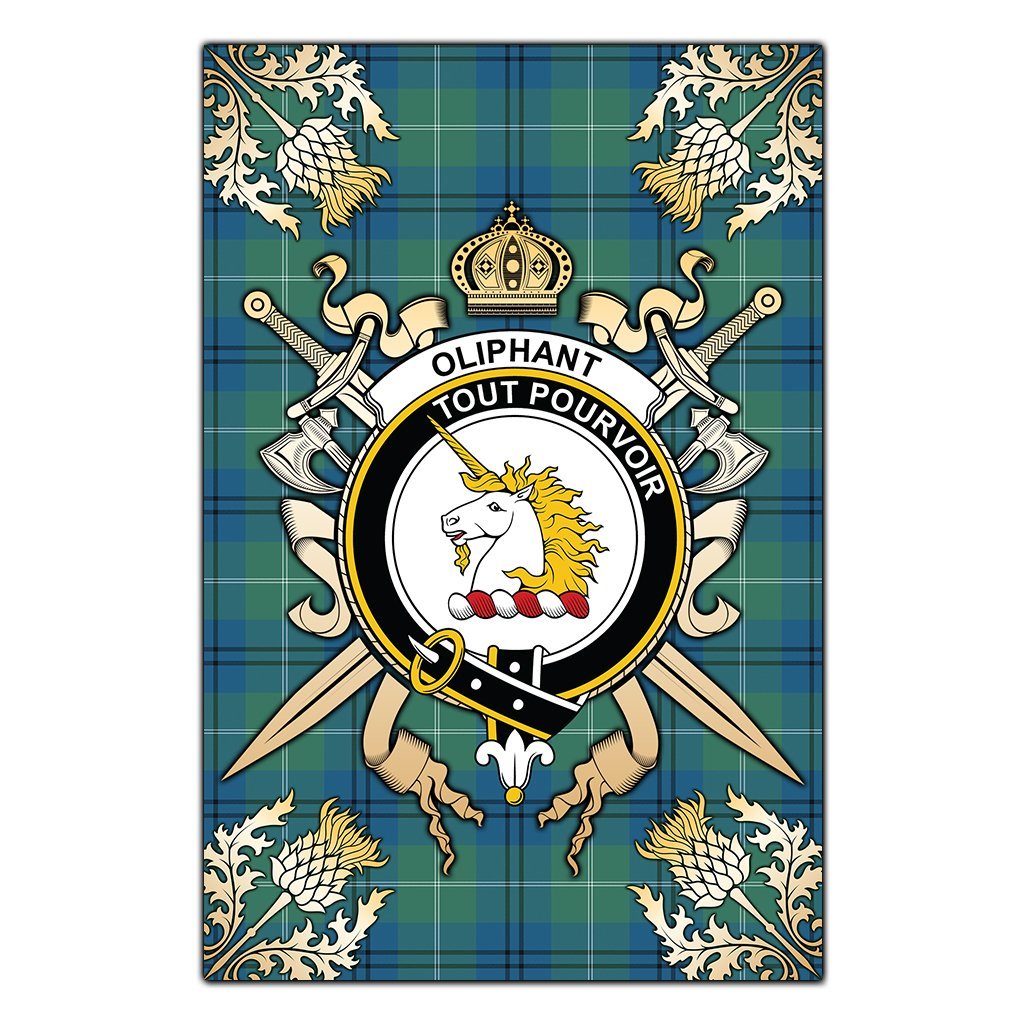 Oliphant Ancient Tartan Crest Black Garden Flag - Gold Thistle Style