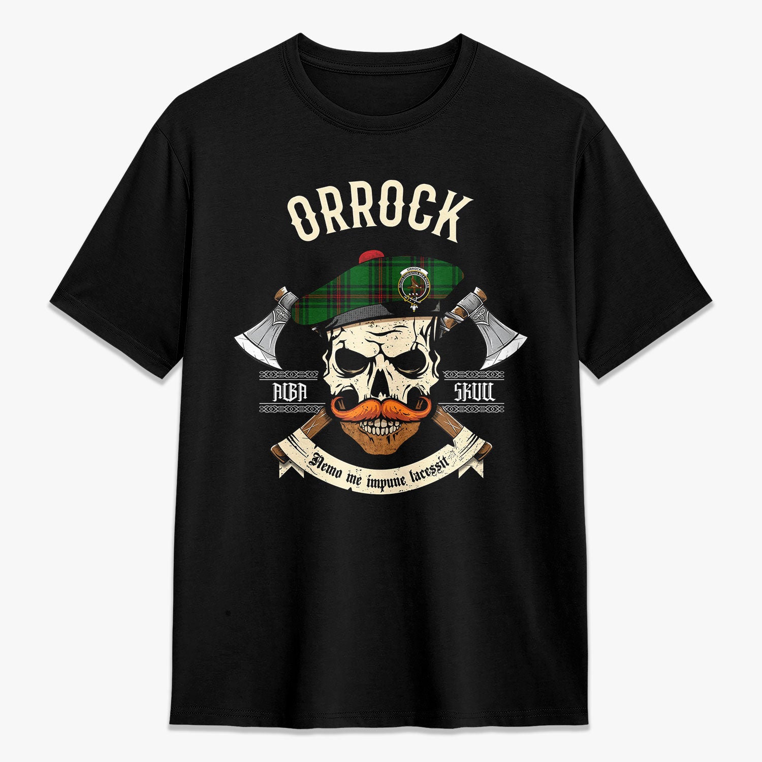 Orrock Tartan Crest 2D T-shirt - Alba Skull Style,