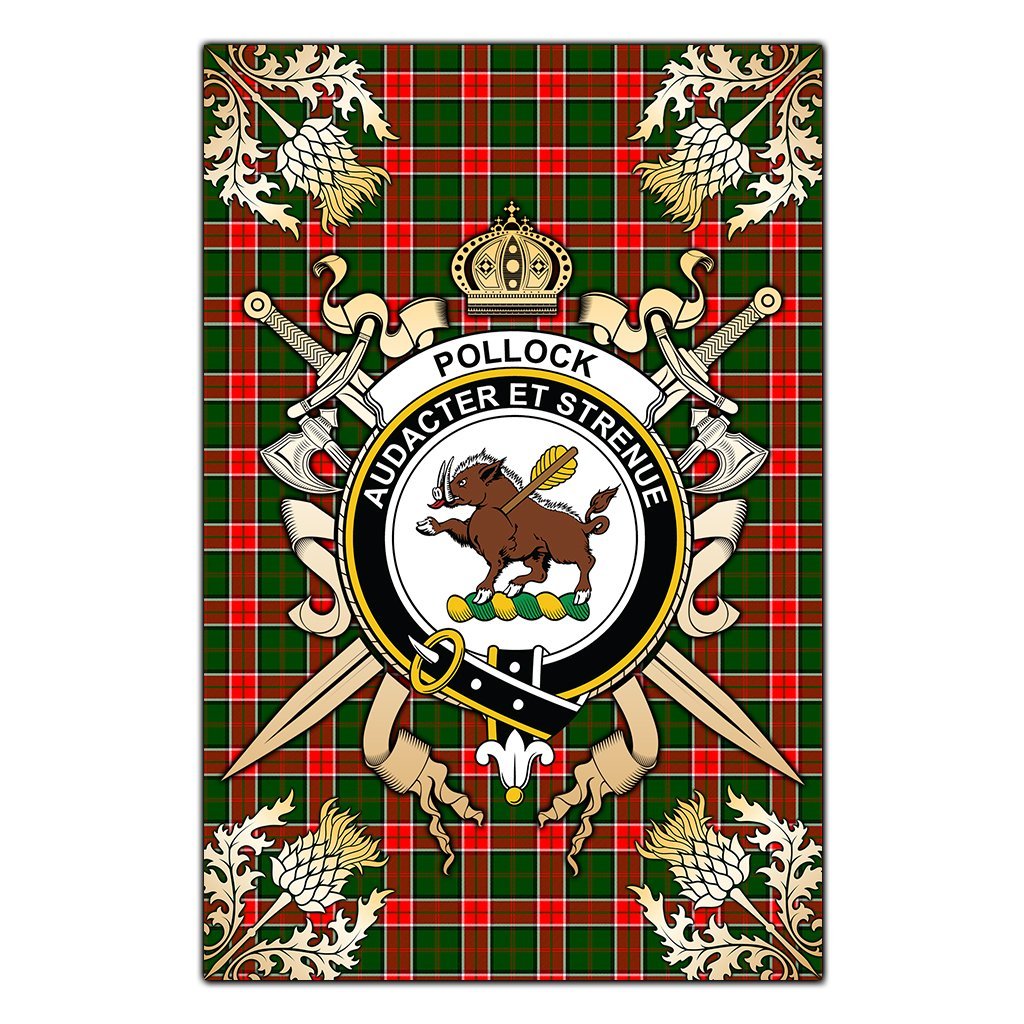 Pollock Modern Tartan Crest Black Garden Flag - Gold Thistle Style