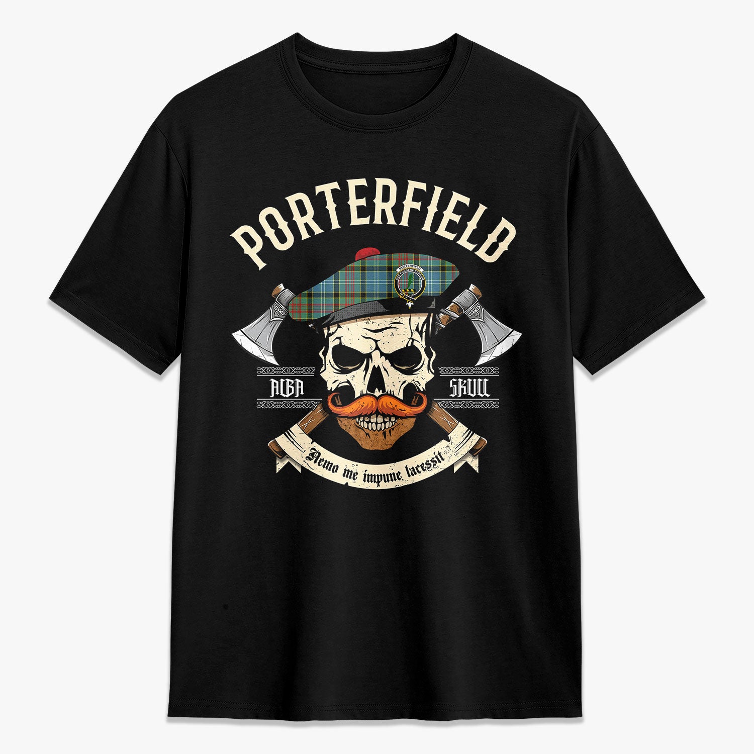 Porterfield Tartan Crest 2D T-shirt - Alba Skull Style,