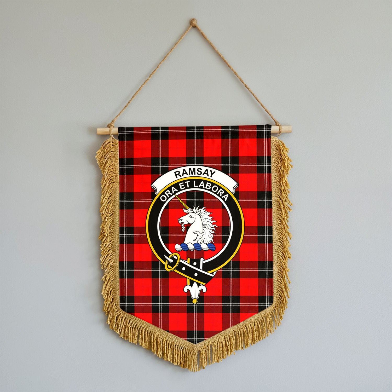Ramsay Modern Tartan Crest Wall Hanging Banner - Wood Pole