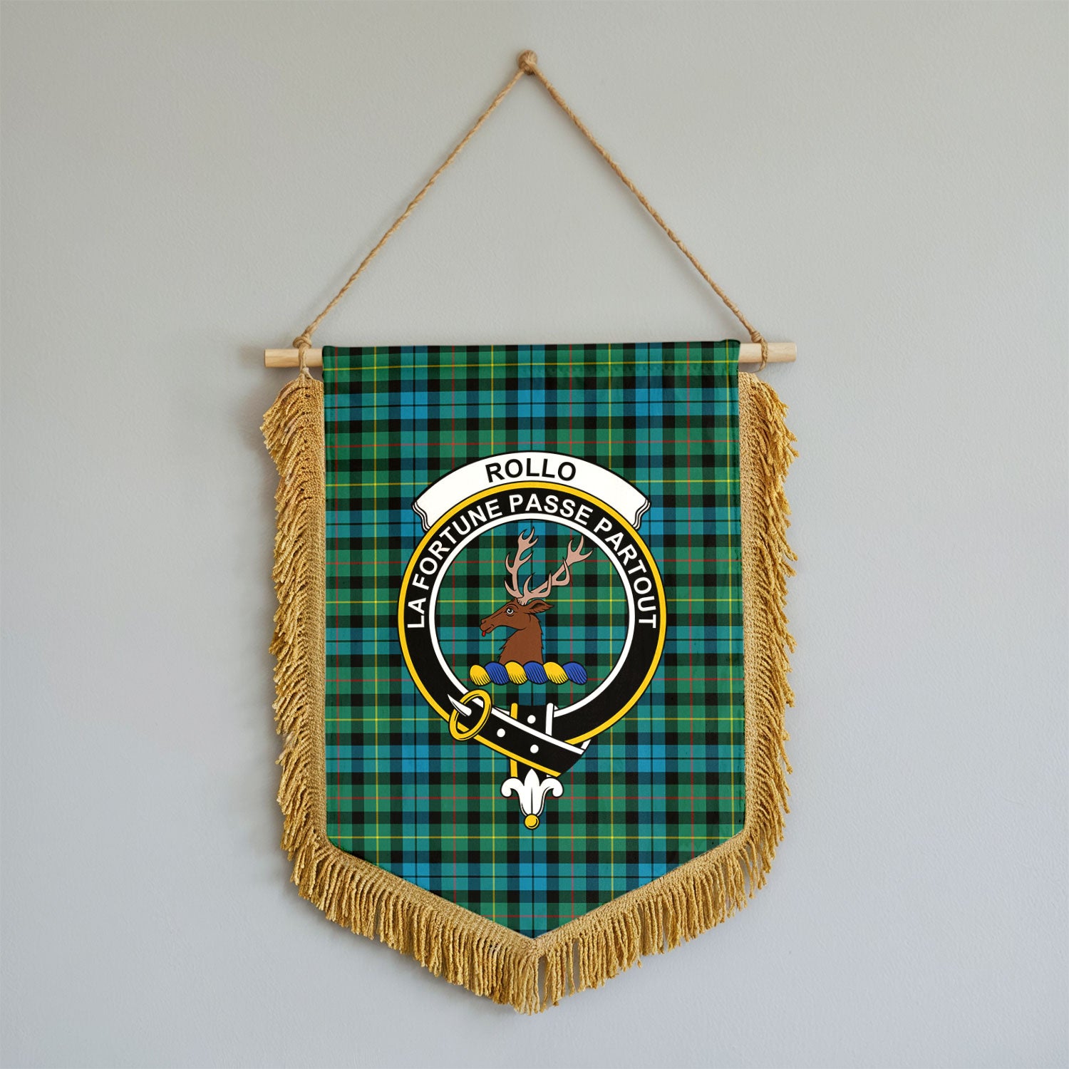 Rollo Ancient Tartan Crest Wall Hanging Banner - Wood Pole