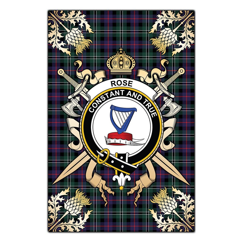 Rose Hunting Modern Tartan Crest Black Garden Flag - Gold Thistle Style