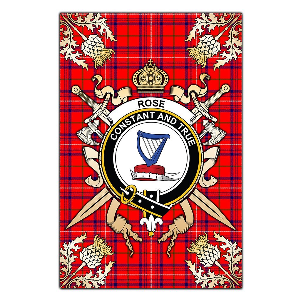Rose Modern Tartan Crest Black Garden Flag - Gold Thistle Style