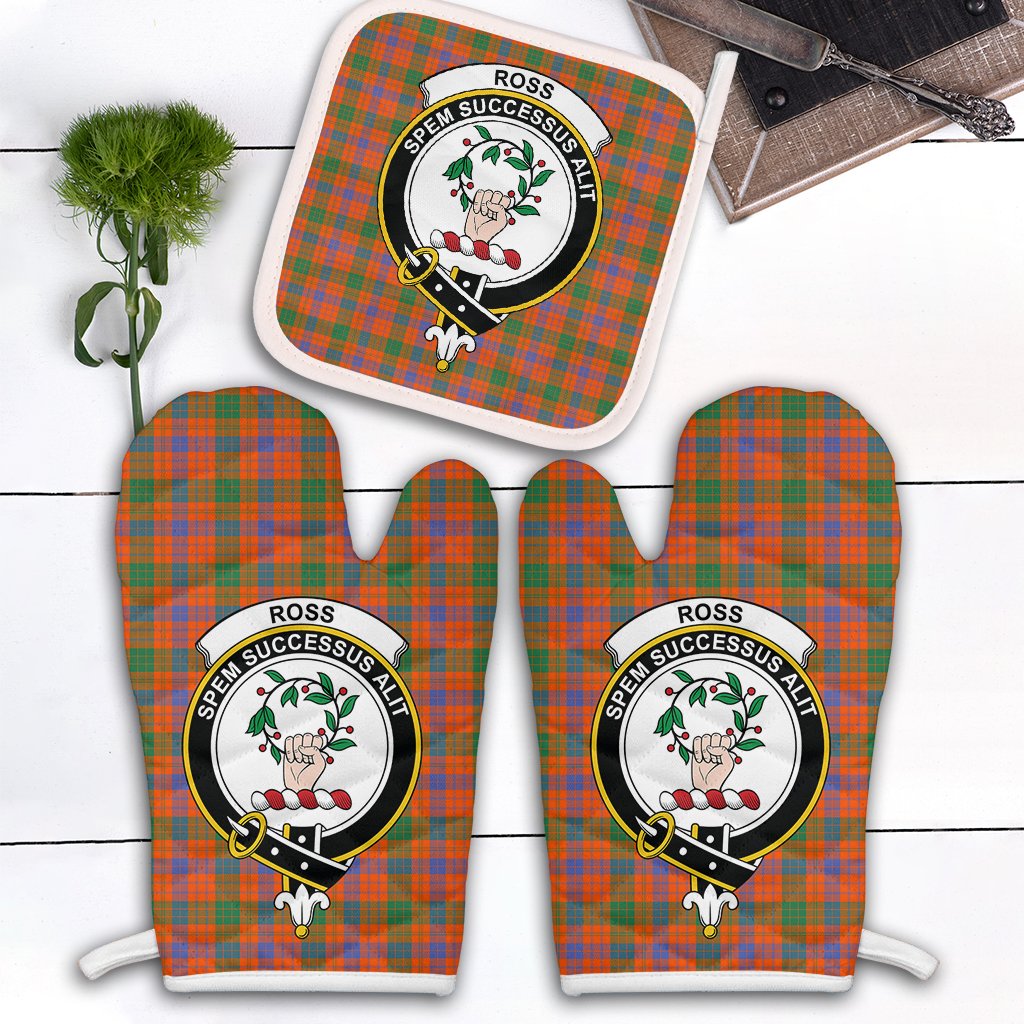 Ross Ancient Tartan Crest Oven Mitt And Pot Holder (2 Oven Mitts + 1 Pot Holder)
