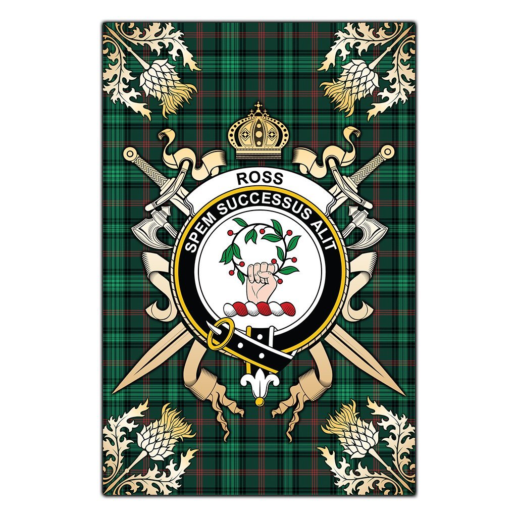Ross Hunting Modern Tartan Crest Black Garden Flag - Gold Thistle Style