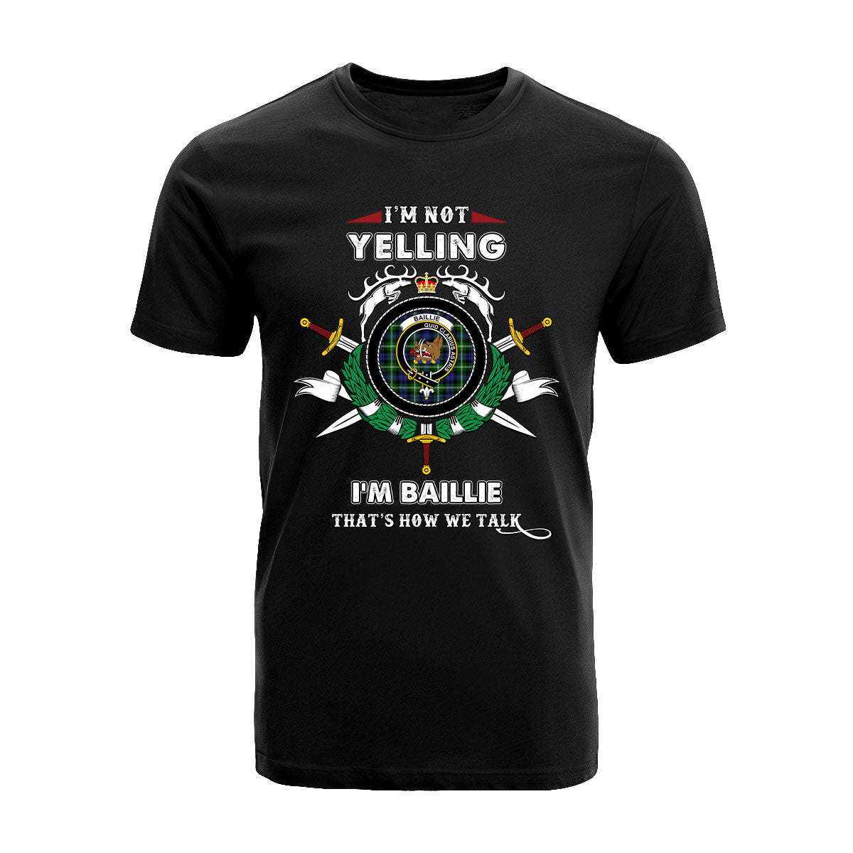 Baillie Tartan Crest T-shirt - I'm not yelling style