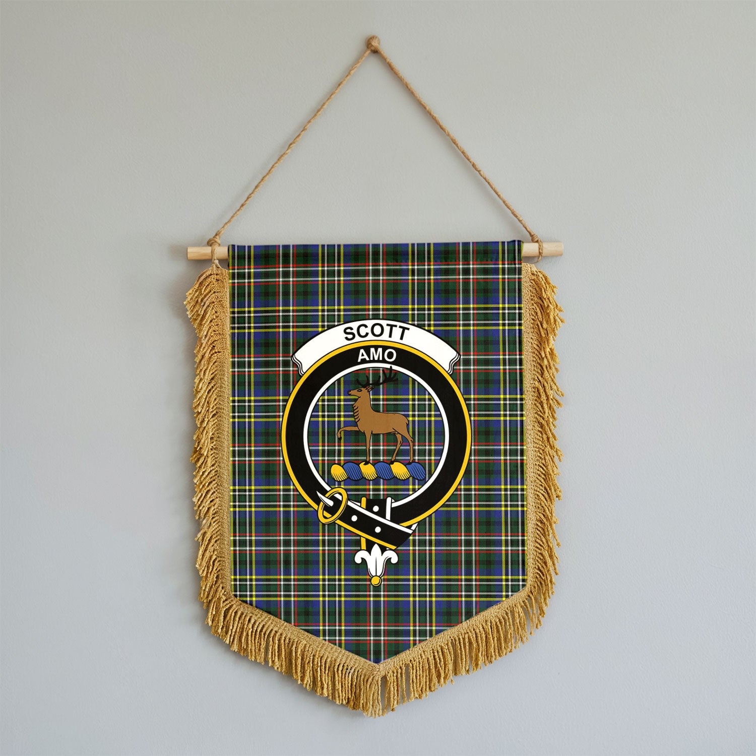 Scott Green Modern Tartan Crest Wall Hanging Banner - Wood Pole