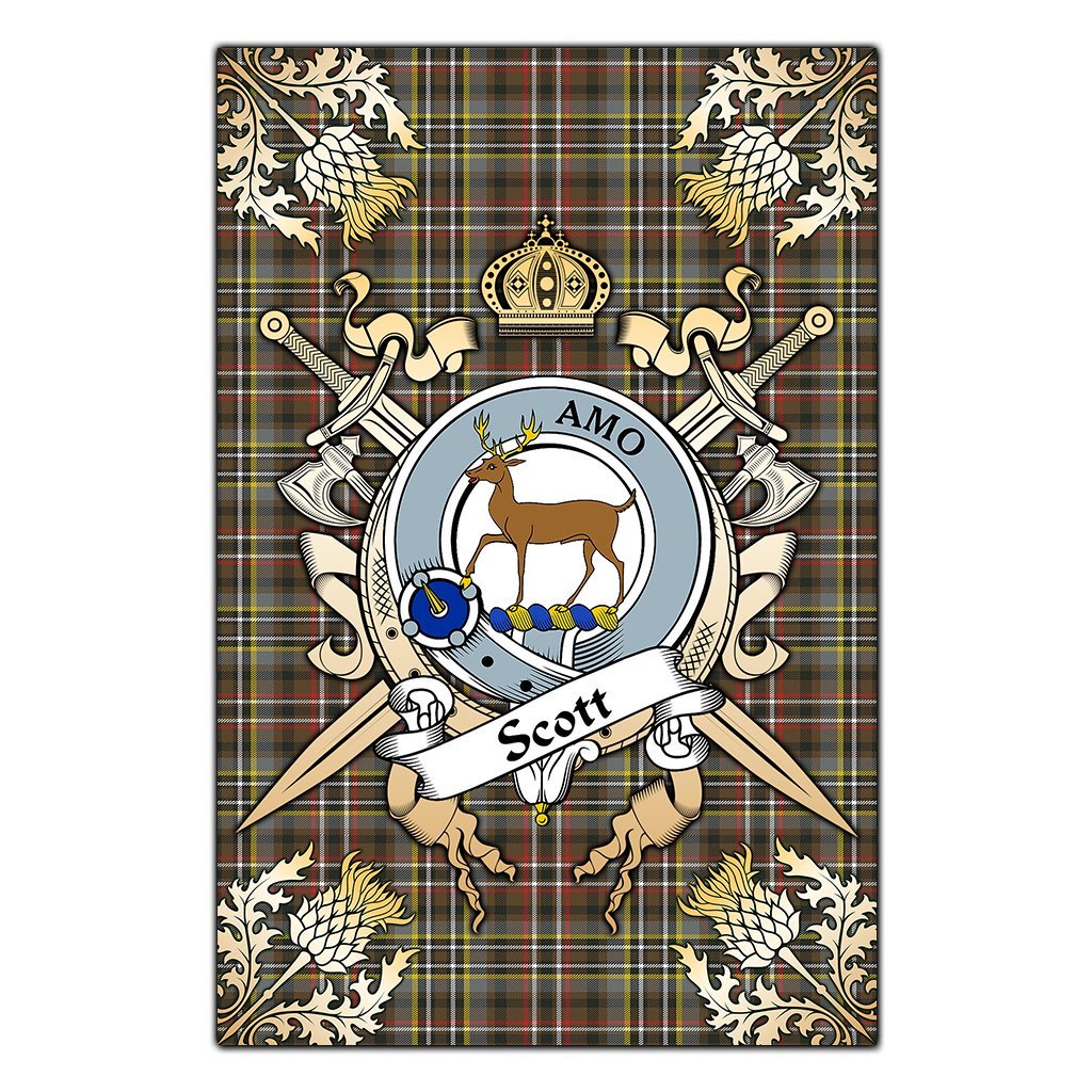 Scott Green Weathered Tartan Crest Black Garden Flag - Gold Thistle Style