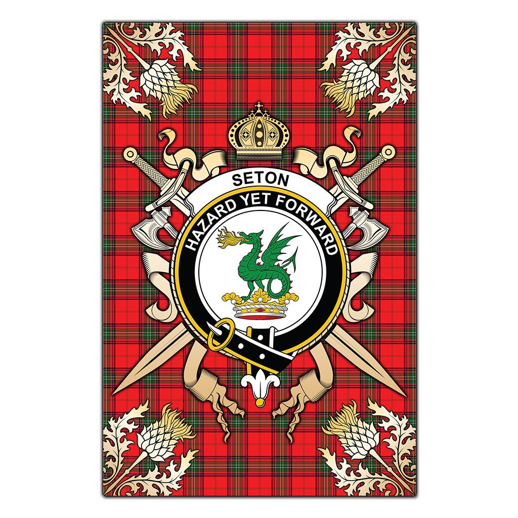 Seton Modern Tartan Crest Black Garden Flag - Gold Thistle Style