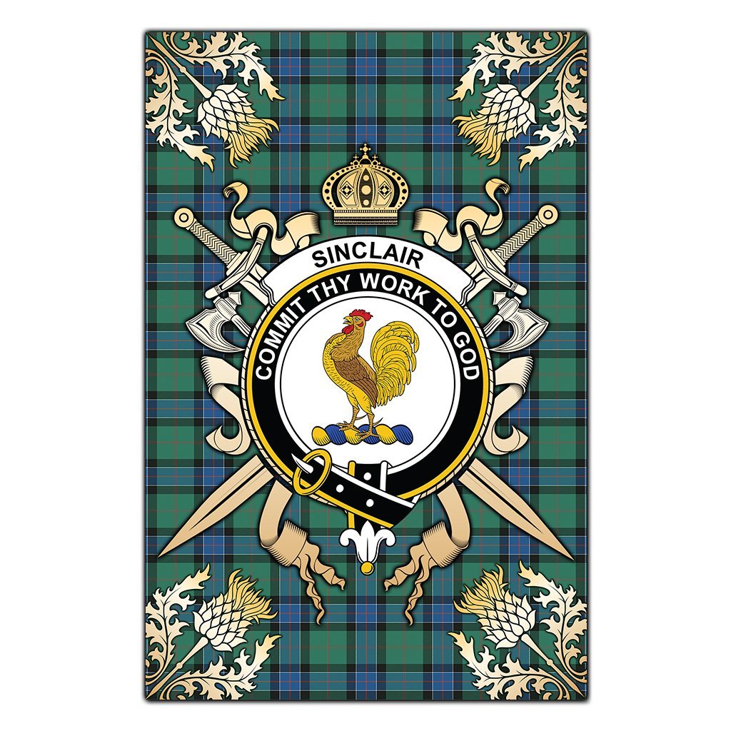 Sinclair Hunting Ancient Tartan Crest Black Garden Flag - Gold Thistle Style