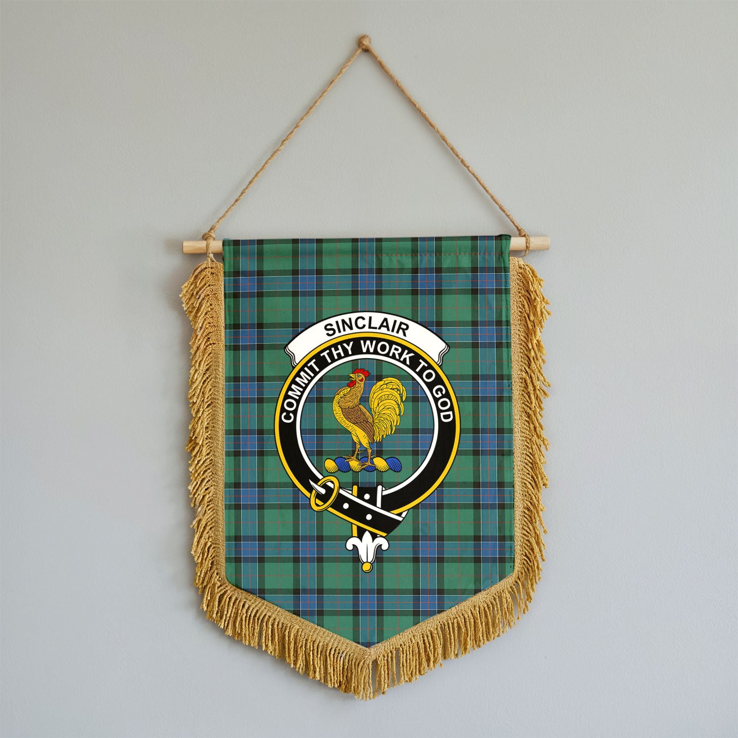 Sinclair Hunting Ancient Tartan Crest Wall Hanging Banner - Wood Pole