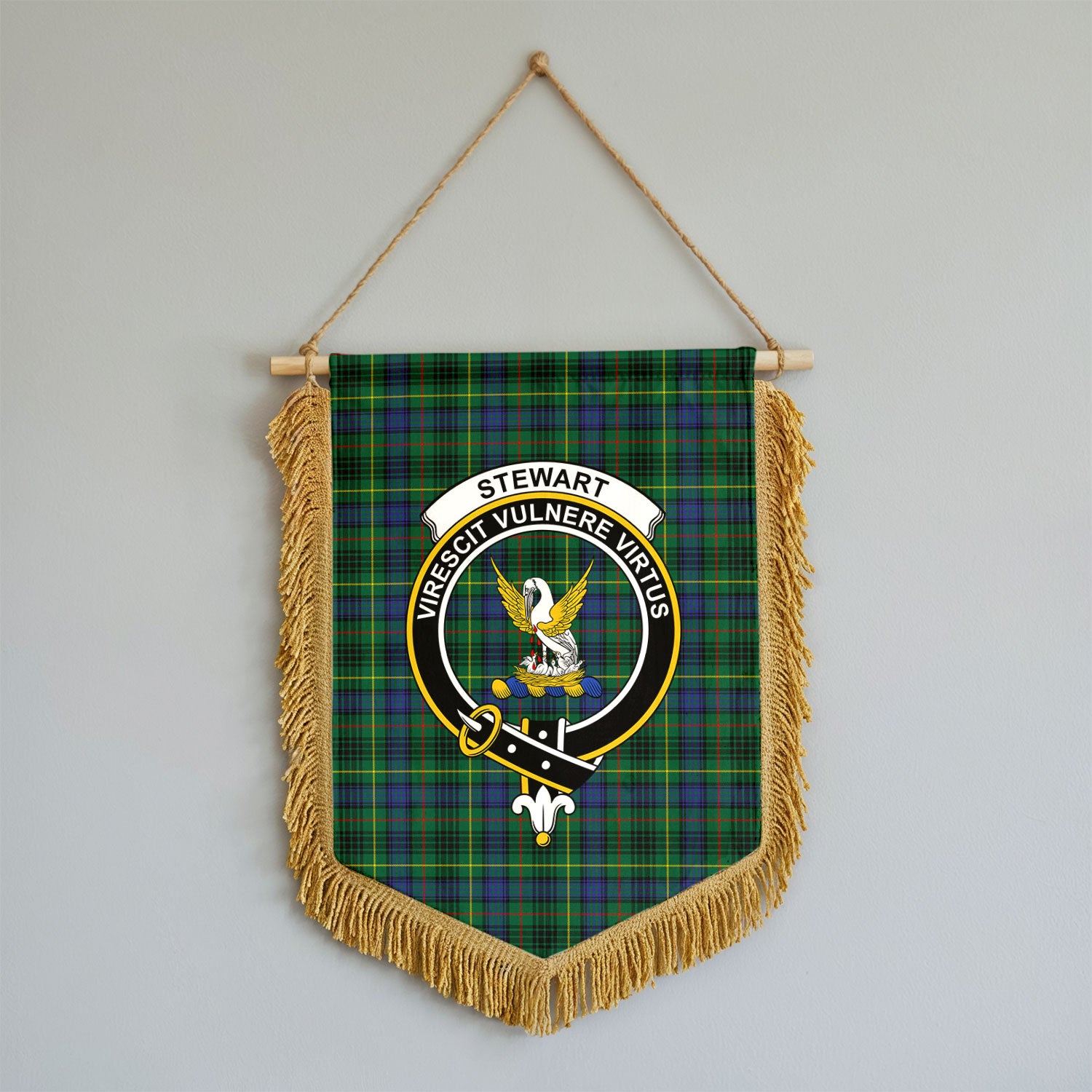 Stewart Hunting Modern Tartan Crest Wall Hanging Banner - Wood Pole