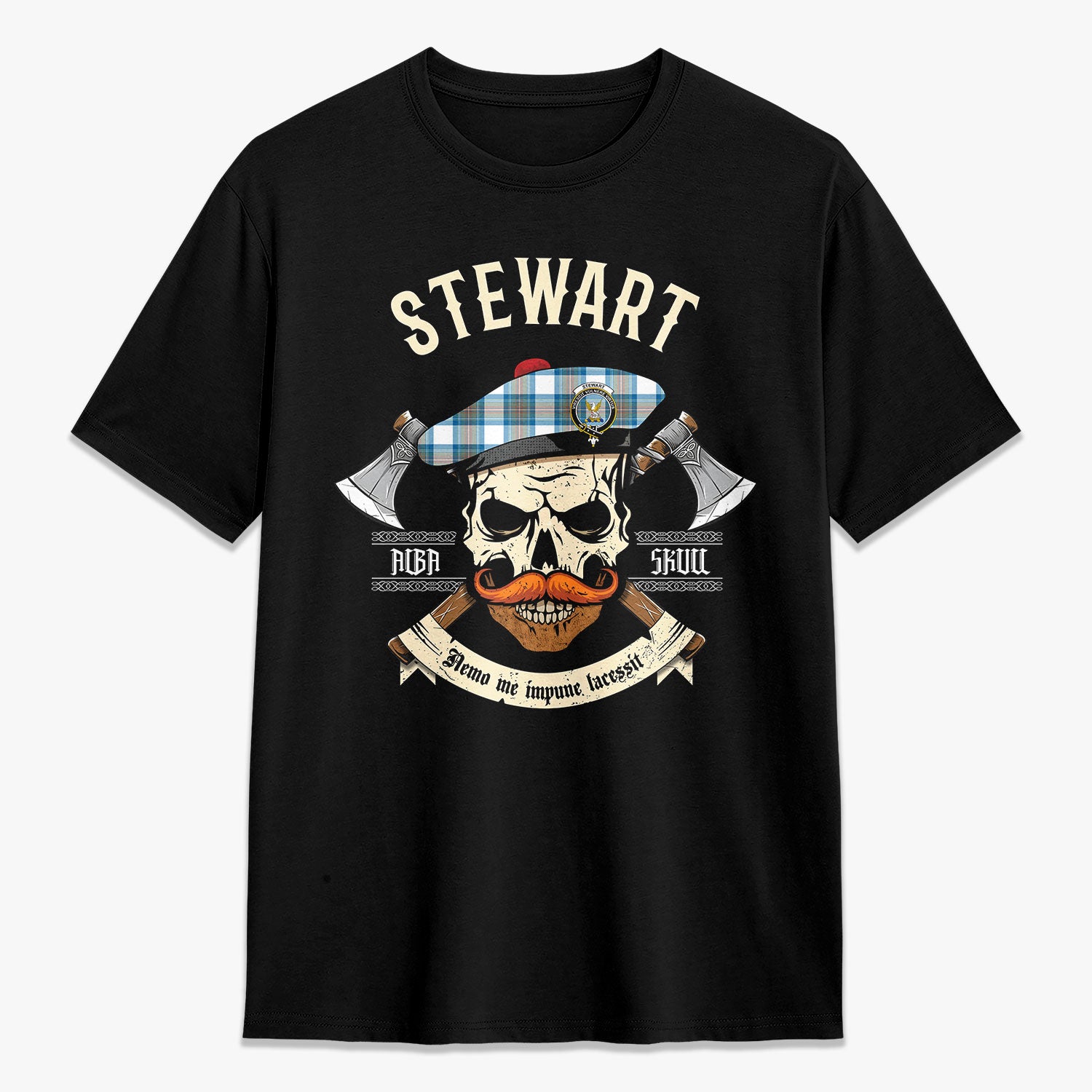 Stewart Muted Blue Tartan Crest 2D T-shirt - Alba Skull Style,