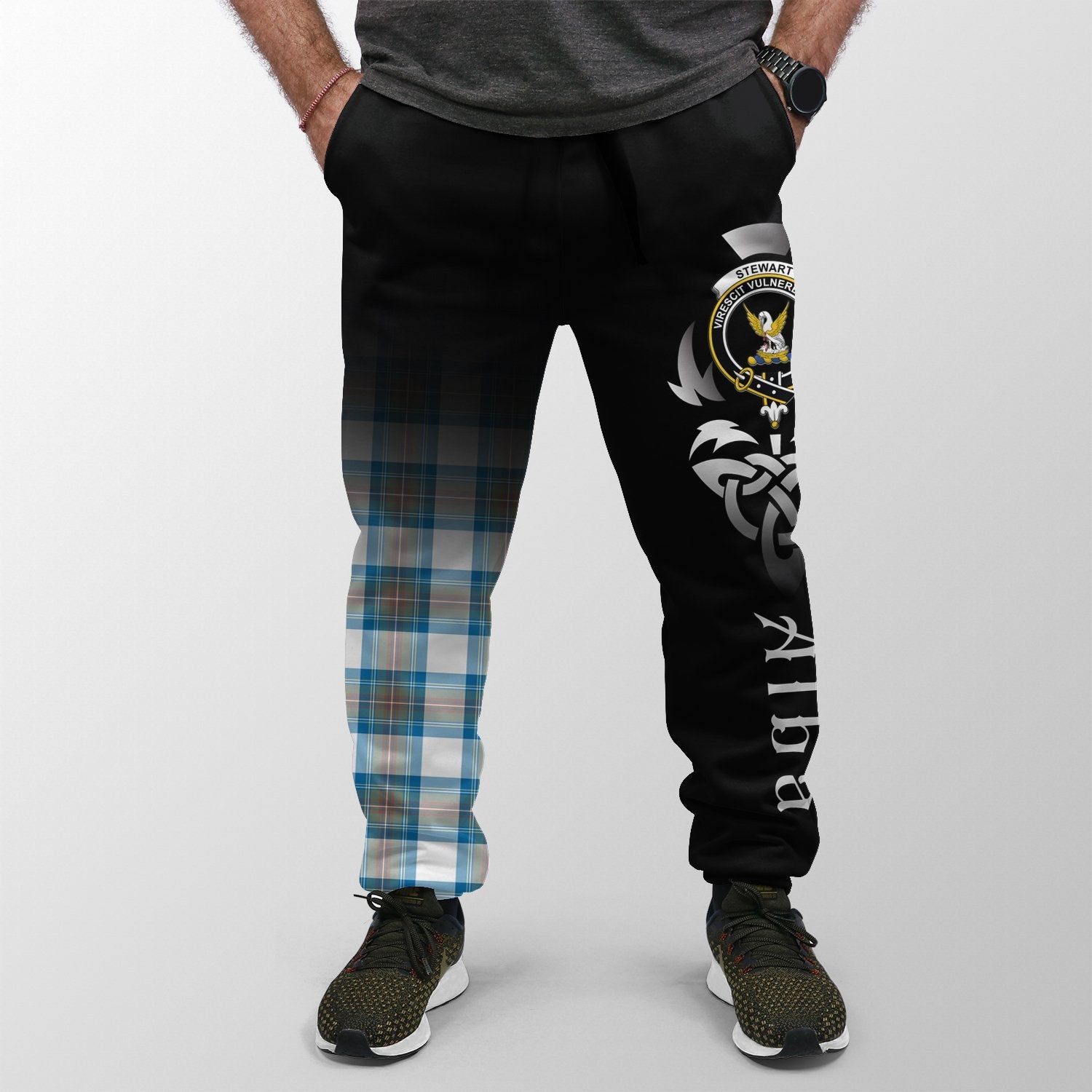 Stewart Muted Blue Tartan Crest Jogger Sweatpants - Alba Celtic Style