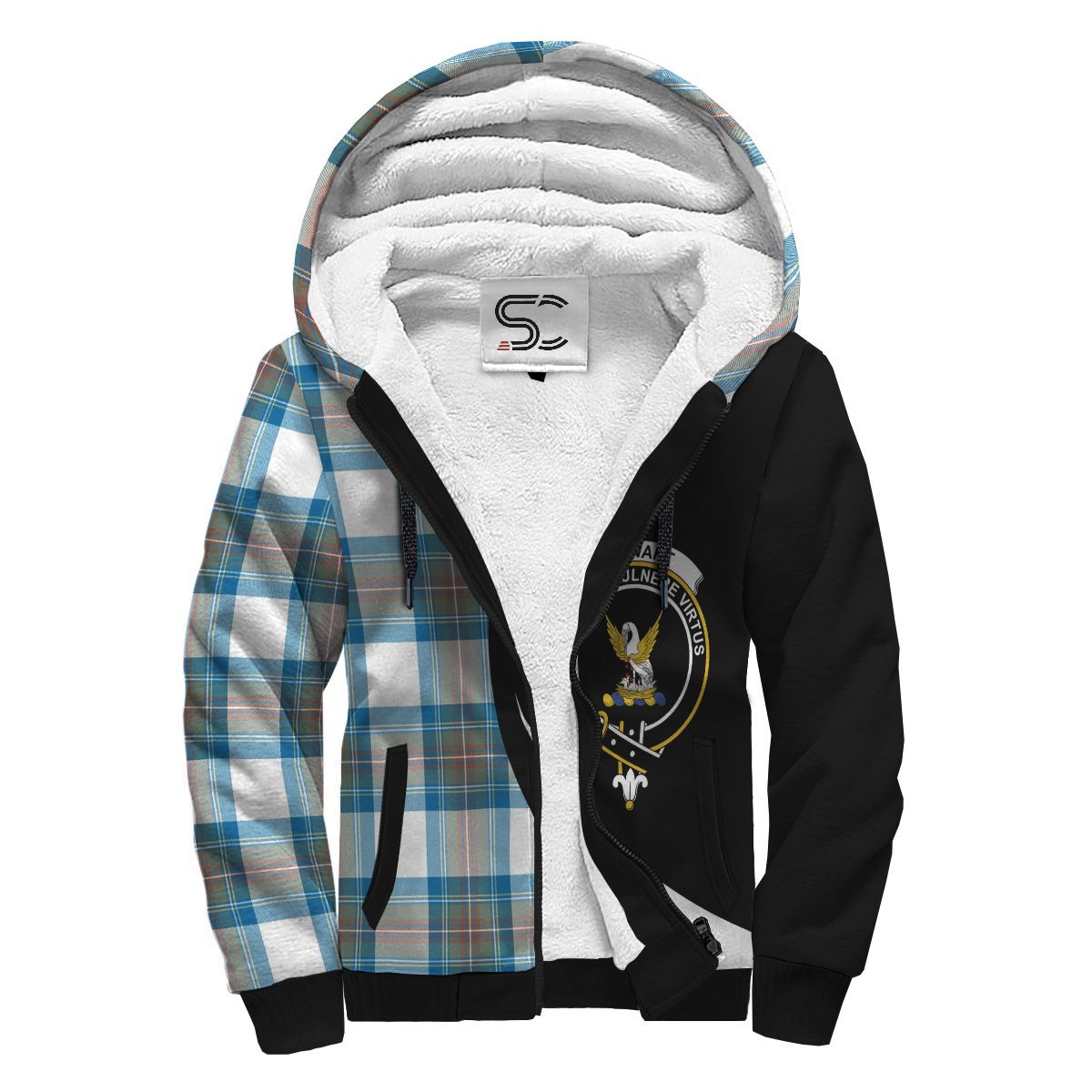 Stewart Muted Blue Tartan Crest Sherpa Hoodie - Circle Style