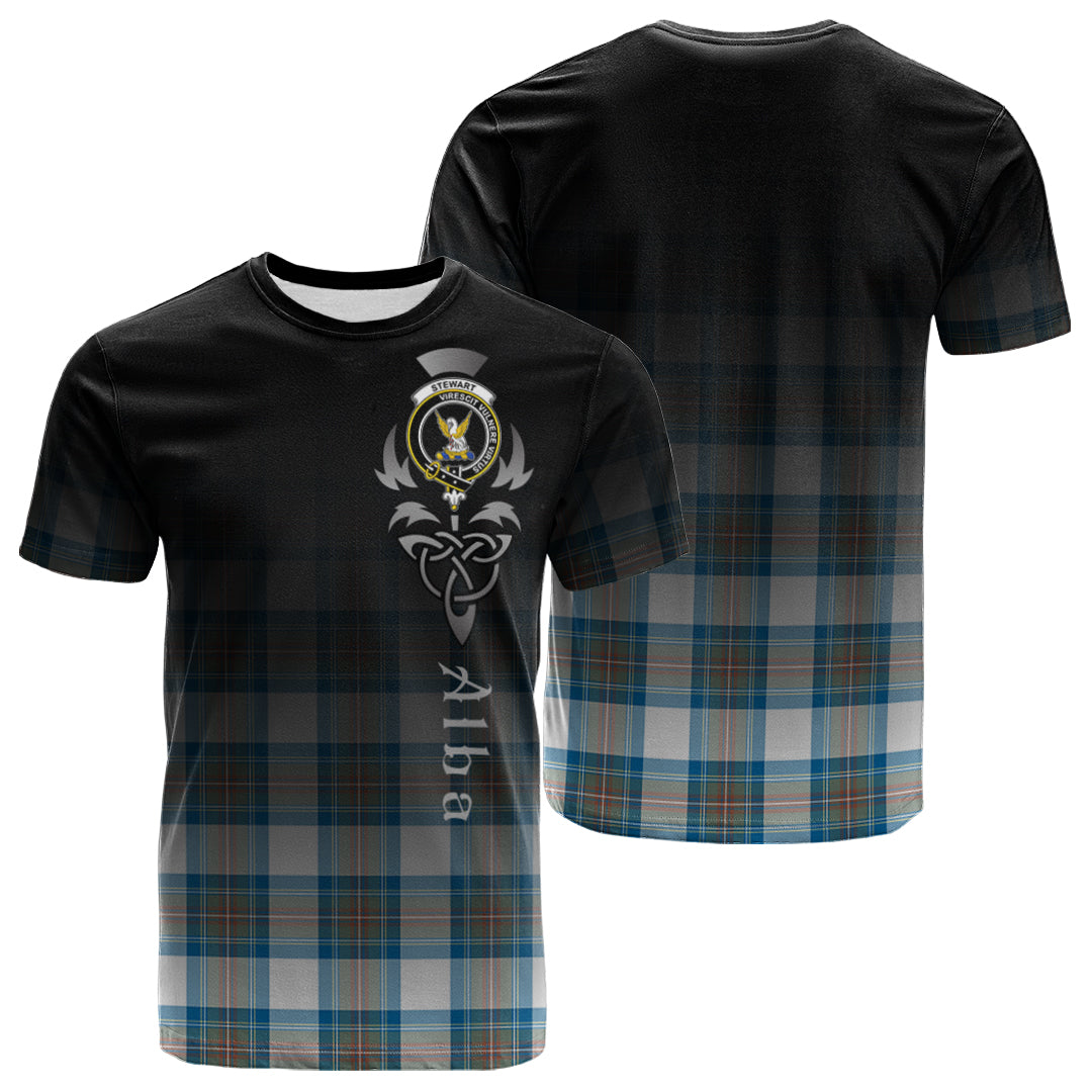 Stewart Muted Blue Tartan Crest T-shirt - Alba Celtic Style