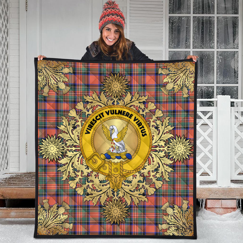 Stewart Royal Ancient Tartan Crest Premium Quilt - Gold Thistle Style