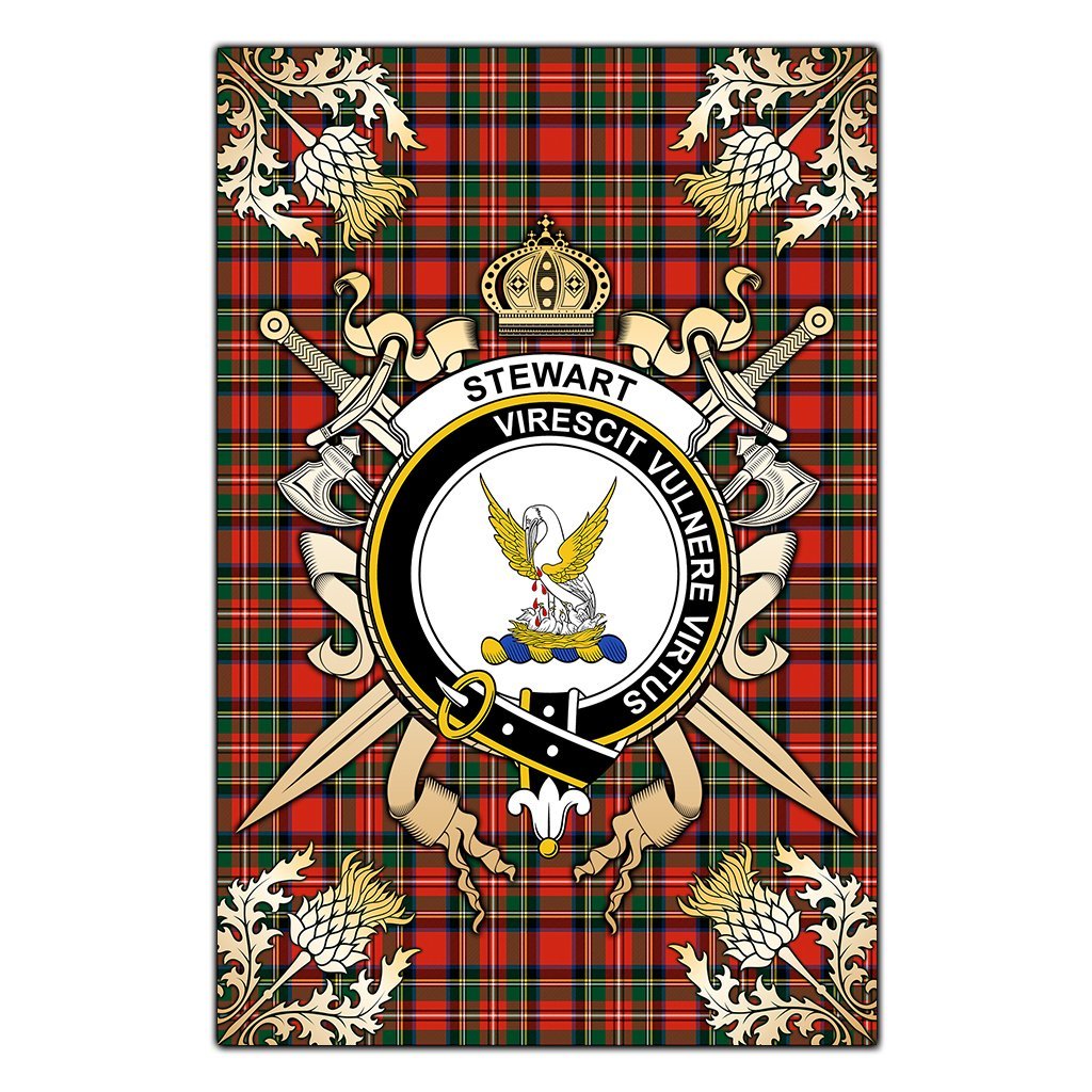 Stewart Royal Modern Tartan Crest Black Garden Flag - Gold Thistle Style