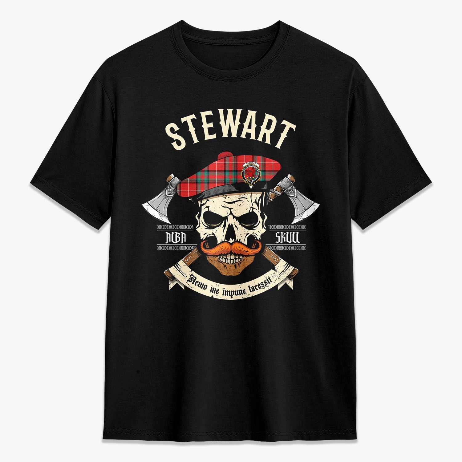 Stewart (Stuart) of Bute Tartan Crest 2D T-shirt - Alba Skull Style,