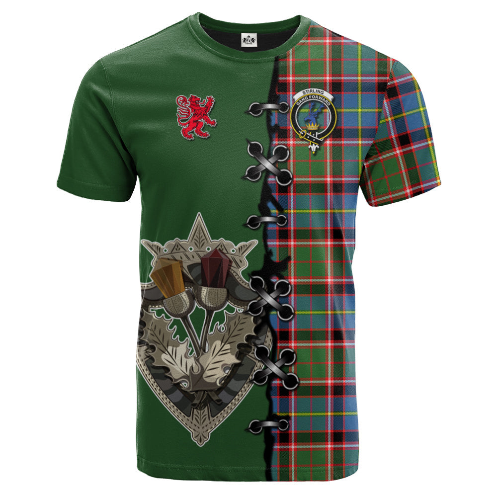 Stirling Bannockburn Tartan T-shirt - Lion Rampant And Celtic Thistle Style